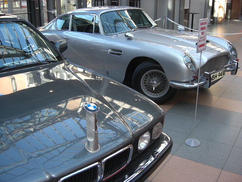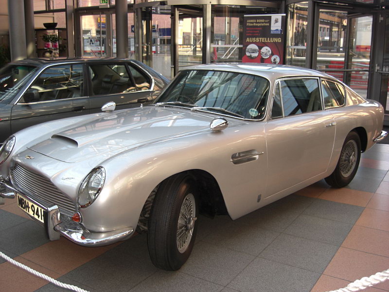- Ein silberner Aston Martin vom Typ DB 6 (fast baugleich zu dem in den Filmen „Goldfinger“, 1964, „Feuerball“, 1965, „GoldenEye“, 1995, „Der Morgen stirbt nie“ (1997), „Casino Royale“, (2006)