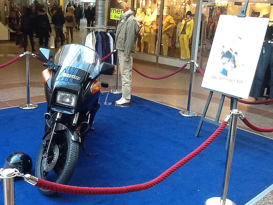 - Eine schwarze Yamaha XJ 650 Turbo (baugleich zu der im Film „Sag niemals nie“, 1983) die von Sean Connery gefahren wurde.